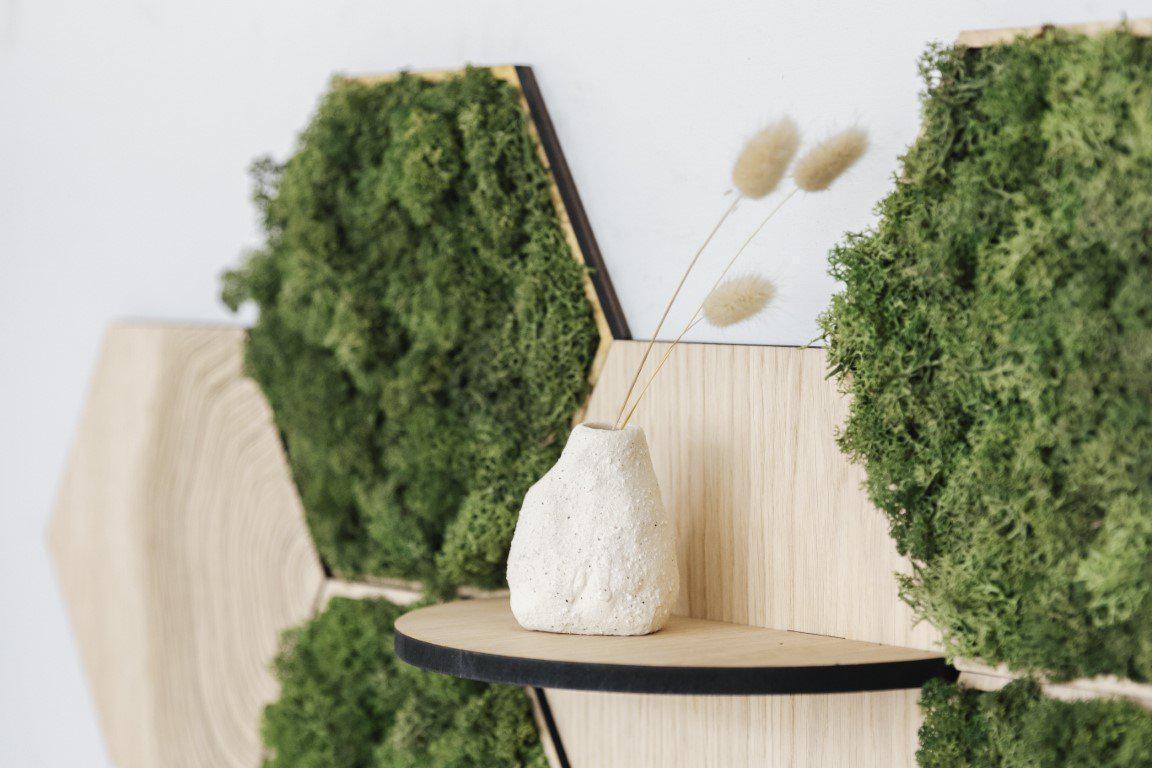 Hexagon met rendiermos - Licht groen / 21cm↕ / ↔24cm
