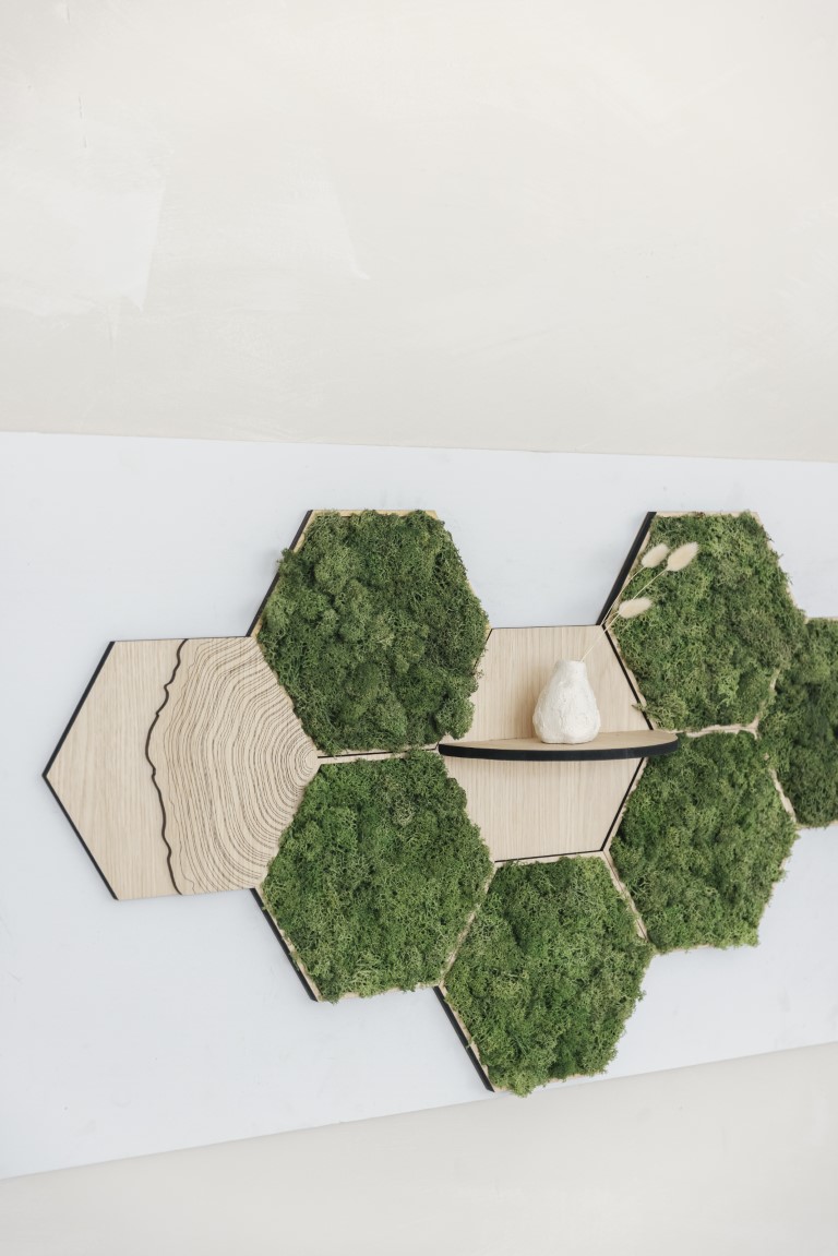 Hexagon met rendiermos - 21cm↕ / ↔24cm